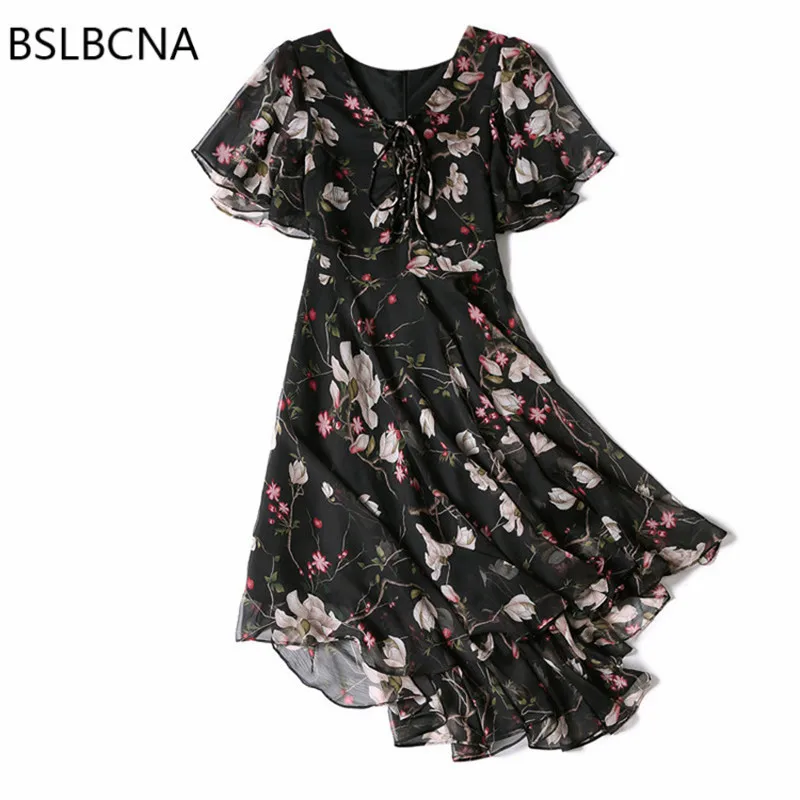 المنتجات ذات الصلة ل Beach و 2018 فستان صيفي النساء الكورية نمط ضئيلة اللباس الطباعة غير النظامية مزاجه عارضة أزياء زائد حجم الشيفون الشاطئ فساتين A187